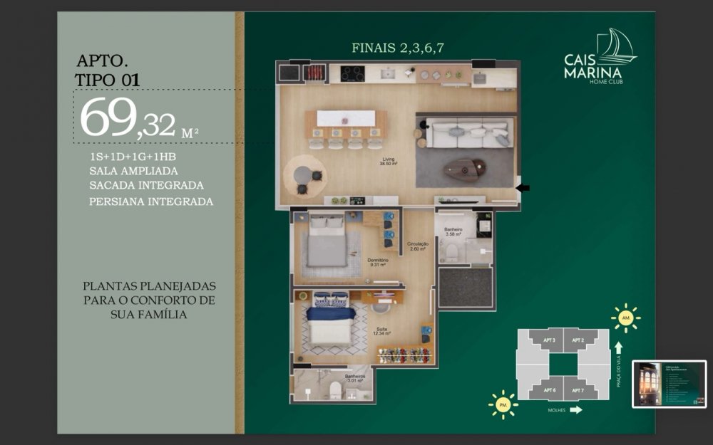 - Área Total: 69,32 m² (R$ 8.944/m²)